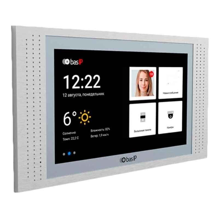 IP домофон BAS-IP модель AT-10 екран 10" сенсорний ємнісний екран, 1280х800, IPS LCD. Мобільний додаток BAS-IP Intercom (безкоштовний). Підключення: до 8 моніторів, до 9 панелей (індивідуальних), до 10 (багатоквартирних) до 32 IP камер, 8 входів для датчиків сигналізації.Підключення кнопки дзвінка.Слот для SD карт (SDHC).Завантаження власних MP3 мелодій. Квадратор Годинник Фоторамка Тур за часом IP камера (постійний перегляд) SIP P2P Кольори: білий, чорний, золото