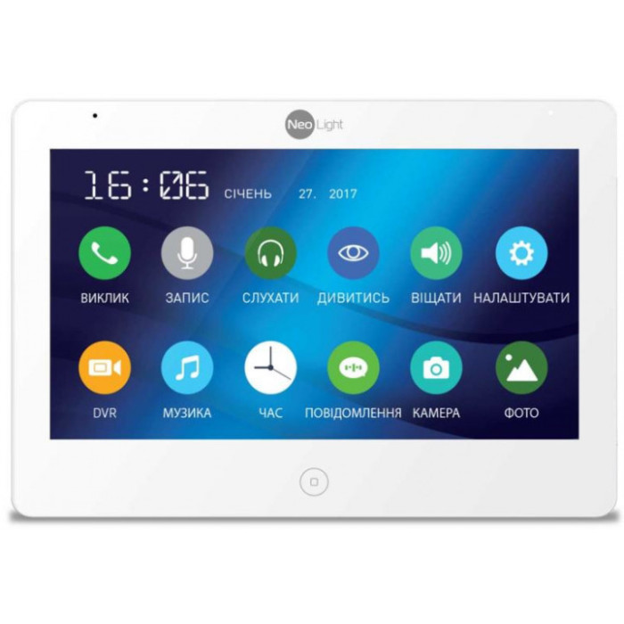 Кольоровий відеодомофон MEZZO HD від компанії NeoLight , в лінійці домофонів компанії вважається найбільшим за розміром дисплея 10" і ультра тонким корпусом. Підтримує вхідний Full HD сигнал з роздільною здатністю 1080р. , а також в режимі запису відеореєстратора швидкість запису 25 к / с. Варіанти запису відео: постійне, за розкладом або рухом.Два типу графічного інтерфейсу російськими/українськими мовами. Відеодомофон MEZZO HD 10" TFT LCD екран, роздільна здатність 1024 х 680. Живлення: 100-220В АС. Акрилова передня панель. Габарити (Д х В х Г): 255 х 180 х 18 мм