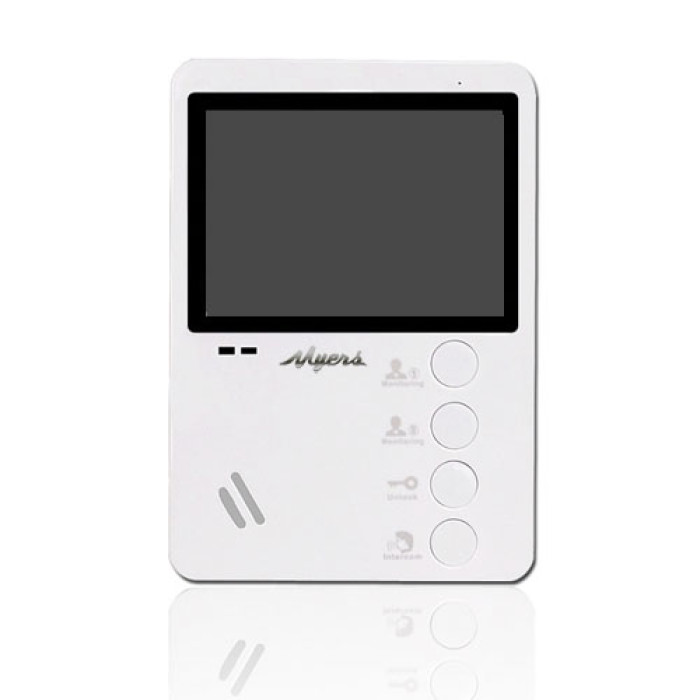 Відеодомофон Myers M-43 White від чеського виробника Myers має самі базові характеристики для контролю доступу в приміщення. Модель оснащена 4,3-дюймовим монітором з гарною якістю зображення. У домофон вбудовані динамік та мікрофон, що дозволяє вести розмову з відвідувачем по гучномовному зв'язку без використання трубки, а для відкриття дверей достатньо натиснути спеціальну кнопку, яка розташована на корпусі пристрою. Домофон має лише 2 канали для відео пристроїв, тому можна підключити 2 панелі виклику або 1 викликову панель + 1 камеру спостереження.