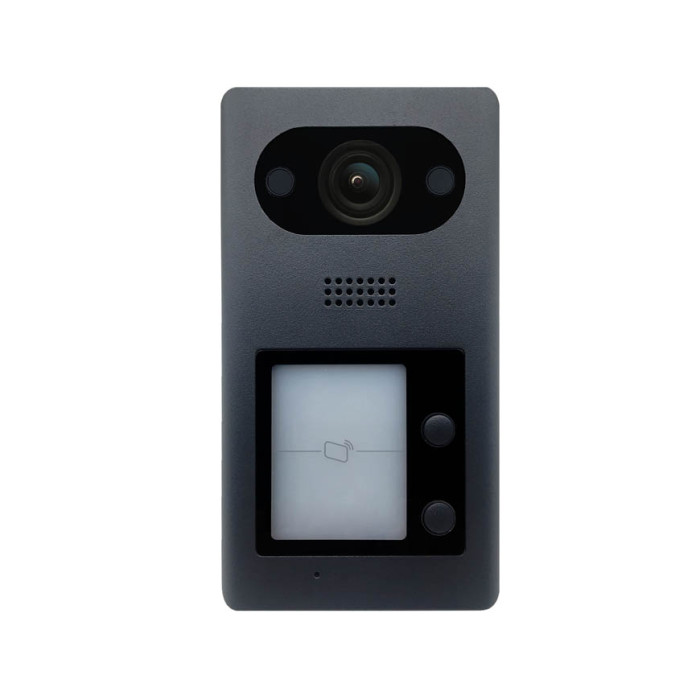 Відеопанель VTO3211D-P2, роздільною здатністю камери 2 Мп викликова IP відеопанель на 2 абоненти; Стиснення: H.264; Камера: 1/2.8" CMOS; Об'єктив: f=1.9 мм (кут огляду 140°); Функції: підтримує роботу без монітора, дзвінок на мобільний додаток; IP65, IK08, алюміній, DC 12В/PoE (802.3af), 182х30