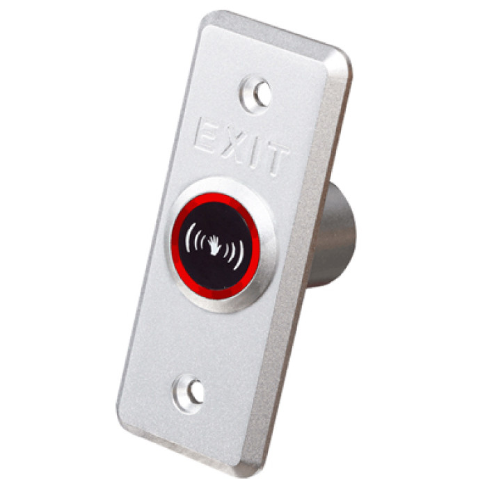 Кнопка виходу Yli Electronic ABK-806E має врізний тип монтажу та призначена для використання у системах контролю доступу. Дана модель працює за принципом No Touch і для відкриття дверей достатньо піднести руку або предмет до кнопки на відстані від 4 до 10 см без необхідності торкання, що дає можливість встановити безконтактну кнопку в місцях з великим потоком людей (офіси, бізнес-центри, банки, житлові комплекси). Також варто відзначити світлову індикацію, розташовану навколо кнопки, яка сигналізує про стан дверей червоний – знаходиться в режимі очікування, а зелений – відкрито. Кнопка має контакти для підключення замків як нормально відкритого (NO), і нормально закритого типів (NC). До цієї кнопки підійдуть монтажні коробки Yli Electronic ABK-800B-P та Yli Electronic ABK-800B-PM. Матеріал виготовлення кнопки – алюміній.