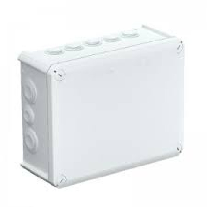 Коробка монтажна зовнішня Коробка монтажна зовнішня T100 150x116x67мм. виконана з поліпропілену і має 7 отворів для введення кабелів.