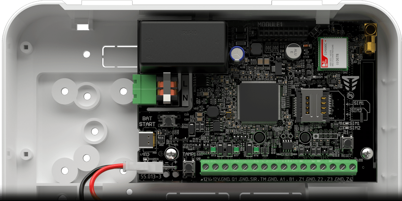 Як ми бачимо з опису в данному ППК Оріон NOVA XS на основній платі 2 провідні зони охорони для підключення на 1 зону датчиків відкриття вхідних дверей, на 2 зону охорони датчики руху в коридор, ( на 1 охоронну зону можливо підключити декілька датчиків ).