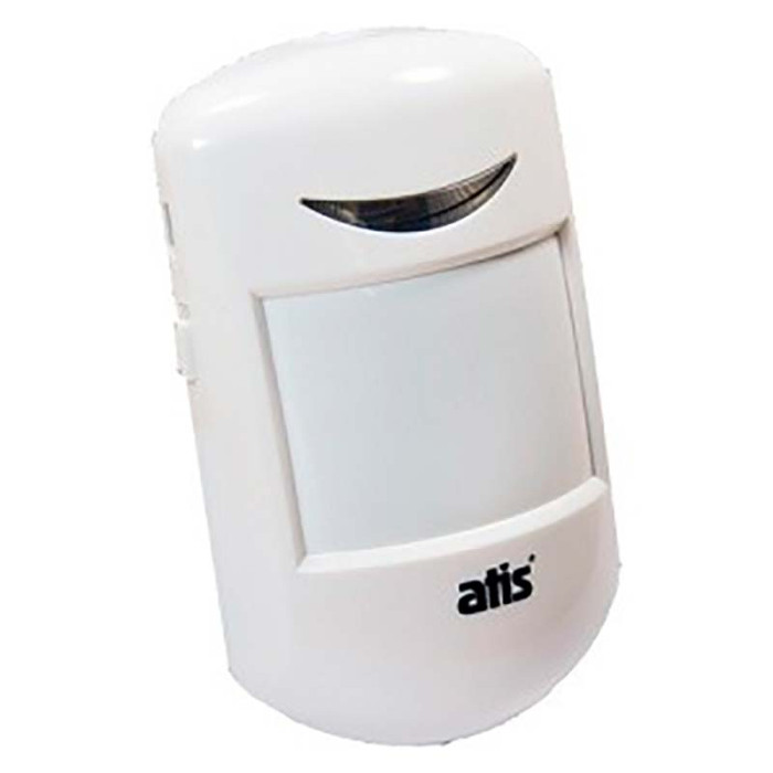 Бездротовий ик датчик руху Atis-803W, мікропроцесорна обробка сигналу, дозволяє відрізнити розлікувати перешкоди від людського руху і таким чином мінімізувати помилкові спрацьовування, дальність виявлення у лінзи ик датчика Atis-803W до 8 ми метрів, кут огляду 110 градусів, дальність передачі , Частота передачі 433МГц, раб напряж DC5V або 3ААА батареї, потреб струм 50мА, робоча температура -10°..+55°С, вологість до 80%, корпус пластик білий, 52х29х27мм. Працює ик датчики з централями фірми Atis, а саме модель Atis Kit-GSM11 та Atis Kit-GSM120 .