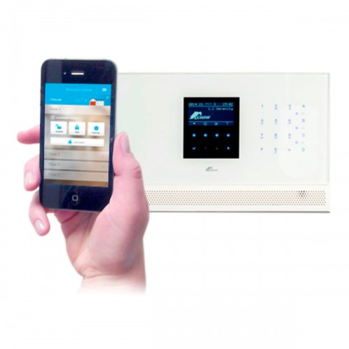 Централь CROW SERENITY-GSM яка взаємодіє зі складовими охоронної системи за протоколами Contact ID або SIA на частоті 868 МГц або 916.5 МГц. Пристрій має 2 провідні та 32 бездротові зони, 4 розділи. Централь служить для автоматичного інтелектуального керування та контролю за охоронними процесами за допомогою датчиків та інших приладів із застосуванням мережі Ethernet та GSM. Бездротове підключення: Так, Клавіатура: вбудована, Інтерфейси: Ethernet, GSM/GPRS, Протоколи: Contact ID, SIA, Робочий частотний діапазон: 868 МГц, Зчитувач проксіміті карток: вбудований. Є можливість роботи автономно з програмою на телефоні так і підключити на пульт охорони.