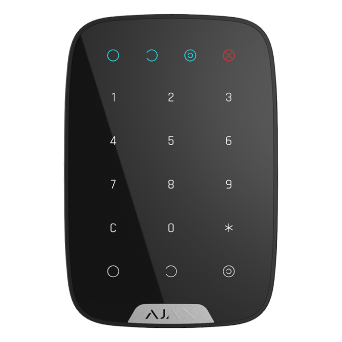 Безпроводова сенсорна клавіатура Ajax KeyPad чорна використовується для керування охоронною системою Ajax. Якщо натиснути кнопку або ввести цифровий код, пристрій по радіоканалу надсилає сигнал на центральний блок сигналізації. Централь обробляє сигнал і вмикає або вимикає режим охорони. Якщо користувач змушений зняти систему з охорони не з власної волі, передбачена функція зняття з примусової охорони, яка відправляє сигнал тривоги на ПЦН.