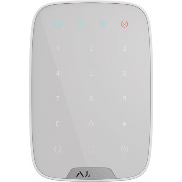 Бездротова сенсорна клавіатура Ajax KeyPad біла використовується для керування охоронною системою Ajax. Якщо натиснути кнопку або ввести цифровий код, пристрій по радіоканалу надсилає сигнал на центральний блок сигналізації. Централь обробляє сигнал і вмикає або вимикає режим охорони. Якщо користувач змушений зняти систему з охорони не з власної волі, передбачена функція зняття з примусової охорони, яка відправляє сигнал тривоги на ПЦН.