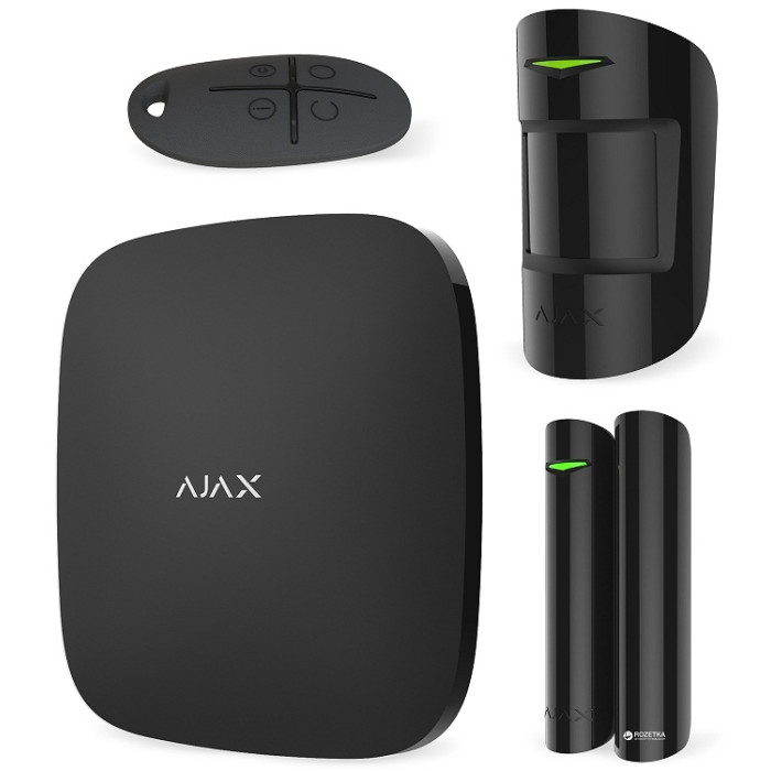 Комплект бездротової сигналізації Ajax StarterKit - це готовий комплект для встановлення бездротової охоронної системи безпеки у Вас в офісі, квартирі, магазині або дачі. Комплект складається з самої охоронної централі під назвою Ajax Hub, який є "мозком" охоронної системи безпеки. До Ajax Hub, підключаються всі бездротові ик датчики руху, або відкриття на об'єкті охорони. Дальність роботи бездротових датчиків становить до 2000 тис метрів у відкритому просторі, що дозволяє встановлювати таку бездротову сигналізацію на кількох поверхах бізнес-центру або приватного будинку. Розумна система контролю наявності датчика в системі постійно контролює сповіщувачі і у разі зникнення одного датчика включається режим тривоги.