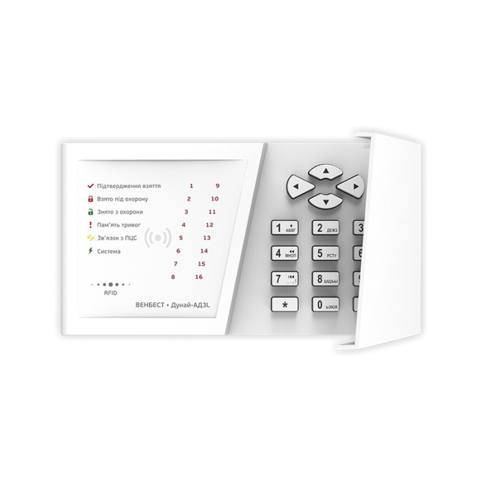 Дунай-АД3L виносна світлодіодна клавіатура для ППК ДУНАЙ 4L з вбудованим зчитувачем RFID карток, а також 3 додаткові охоронні зони на борту. Для встановлення/зняття об'єкта з охорони можна використовувати пароль із 4 цифр або RFID мітку. Підключається клавіатура до ППК за допомогою кабелю "кручена пара" на відстань до 300 метрів, протокол передачі даних RS 485. На передній панелі клавіатури відображається стан зон охорони, стан грпупп охорони, пам'ять тривог, підтвердження взяття об'єкта під охорону. За допомогою виносної клавіатури Дунай-АД3L можна не тільки керувати керувати охоронним приладом, а так само і розширити кількість зон охорони. Купити клавіатуру для ППК Дунай 4L можна в інтернет магазині систем безпеки "Контур сб".