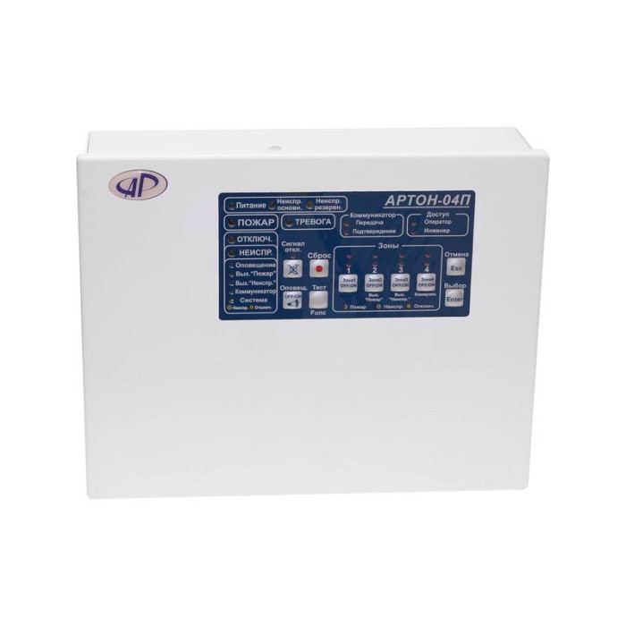 ППКП-04П від компанії Артон застосовуються при створенні автономної або централізованої пожежної охорони на об'єкті та забезпечують цілодобовий контроль стану за 4 шлейфами сигналізації. Даний прилад дозволяє визначити та відобразити кілька станів шлейфу: Увага (при спрацюванні першого сповіщувача у шлейфі сигналізації), Пожежа, Черговий режим, Шлейф вимкнений, Несправність при короткому замиканні, а також у разі обриву. Пристрій дозволяє підключити в один ШС активні та пасивні сповіщувачі та побудувати комбіновані шлейфи сигналізації використовуючи 2 та 4 провідні схеми підключення. Варто зазначити, що кожен із шлейфів приладу можна налаштувати як пожежний без або з верифікацією, із спрацюванням 2 сповіщувачів, а також можна встановити залежності типу А, B, C. Прилад приймально-контрольний пожежний розрахований на підключення до 32 активних сповіщувачів у кожний шлейф сигналізації . У моделі присутні виходи: Оповіщення, Несправність, Пожежа, 2 програмовані сильноточні виходи AUX1 і AUX2, 2 програмовані реле, а також є вхід для підключення зовнішнього резервного джерела живлення. Програмування пристрою можливе за допомогою комп'ютера. АРТОН-04П дозволить визначити стан і несправність у разі короткого замикання вихідних ключів, за відсутності напруги, розряду або виходу з ладу акумулятора та оперативно усунути проблеми, що виникли.