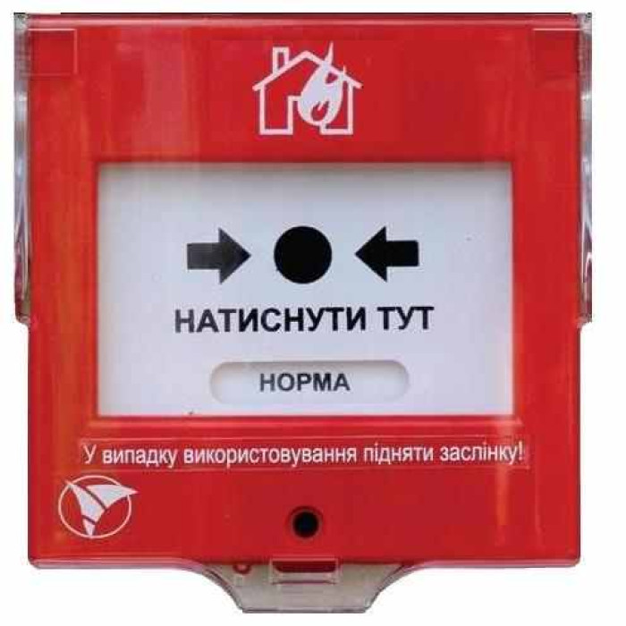 ІПР-1 Сповіщувач пожежний ручний ІПР-1 (виконання 1) З відкидною прозрачною кришкою, струм комутації до 20 мА, напруга до 30В, без світлодіодної індикації. Для пожежного ППКП
