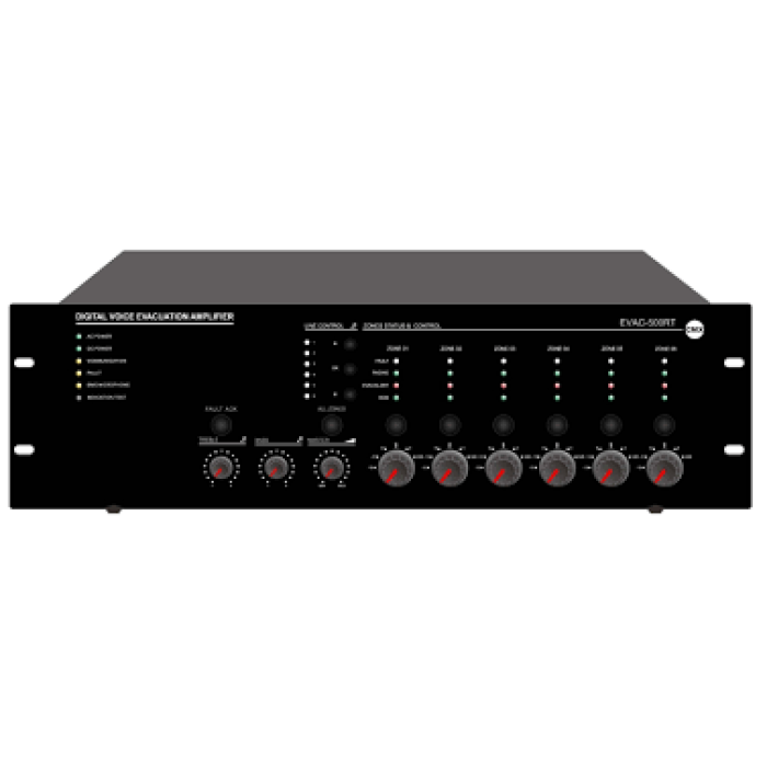 EVAC-240 6-зонний (12 ліній) евакуаційний підсилювач-контролер, для системи оповіщення про пожежу або повітряну тривогу, вбудований 240Вт підсилювач класу D, запис повідомлень на SD карту, аварійний мікрофон, 8 входів управління, контроль лінії динаміків