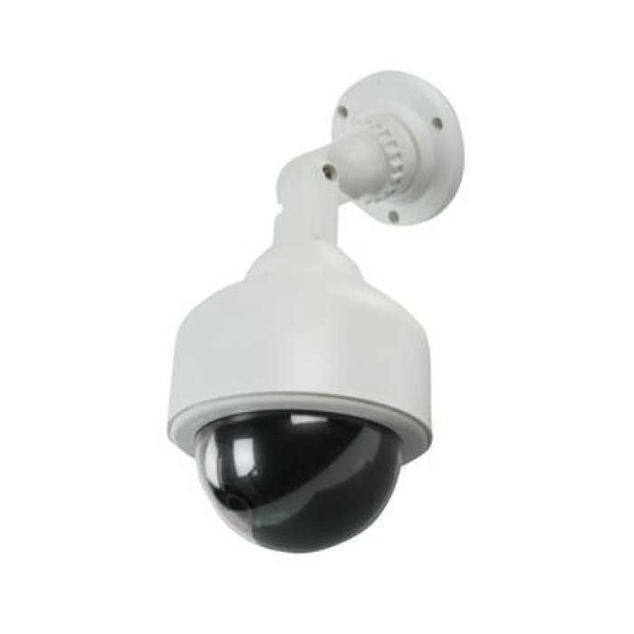 Муляж вуличної роботизованої відеокамери модель А 70, світлодіод, що миготить, живлення: 2 батареї типу 1.5V AA (у комплект не входять). Тривалість роботи батареї: 3-6 місяців. Матеріал: пластик, колір: білий. Розміри купола: висота – 160мм, d – 128мм Довжина кронштейна – 125мм. Відмінний варіант для емітації роботизованої камери охорони периметра. Якщо у Вас стоїть завдання купити камеру обманку А 70 , можна в нашому інтернет-магазині охоронних систем безпеки.