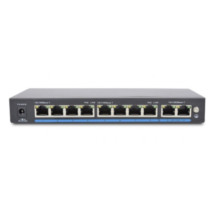 Не дорогий PoE свіч модель PoE-1010-8P/250m - некерований PoE AF комутатор. 8 портів PoE 10/100Мбіт/с, дальність до 250м. 2 порти 10/100 Мбіт/с UPLINK. Розміри: 283 x 178 x 45мм PoE свіч служить для підключення ip камер відеоспостереження в яких застосовується технологія передачі даних та живлення камер через технологію PoE, така технологія дозволяє використовувати 1 кабель "кручена пара" для підключення камер відеоспостереження, максимальна відстань від PoE свіч модель PoE -1010-8P /250m до камери спостереження не повинна підвищувати 250 метрів. провідної жили. Доступна ціна на PoE-1010-8P/250m в інтернет магазині систем безпеки "Контур сб" робить цю модель комутатора доступним для покупки, так само в нашому каталозі товарів PoE свічей є інші моделі на 4-8-16 портів.